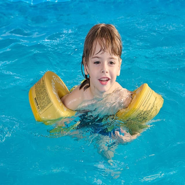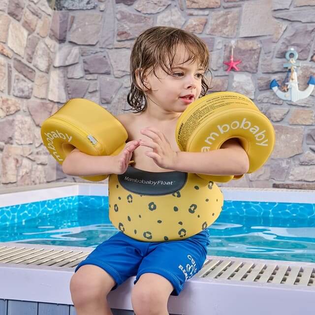 Suitable from 3 years, the Mambobaby arm float is a system of 3 floats specially designed to offer balance and buoyancy for children learning to swim. The chest float has an adjustable strap for comfort and additional support. The two armband floats allow the child to move freely. As your child builds confidence in the water, remove the armband floats and introduce them to swimming in the horizontal position.